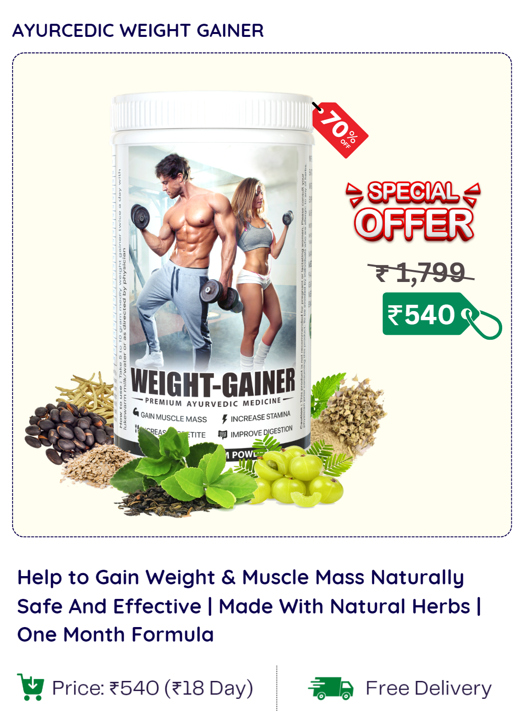 NatureMass тАУ Natural Ayurvedic Mass Gainer Powder (200g)